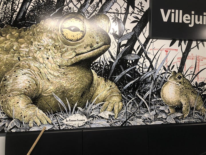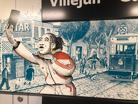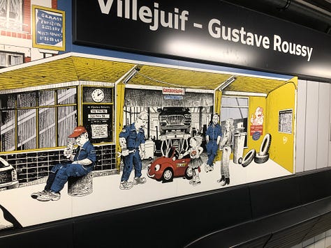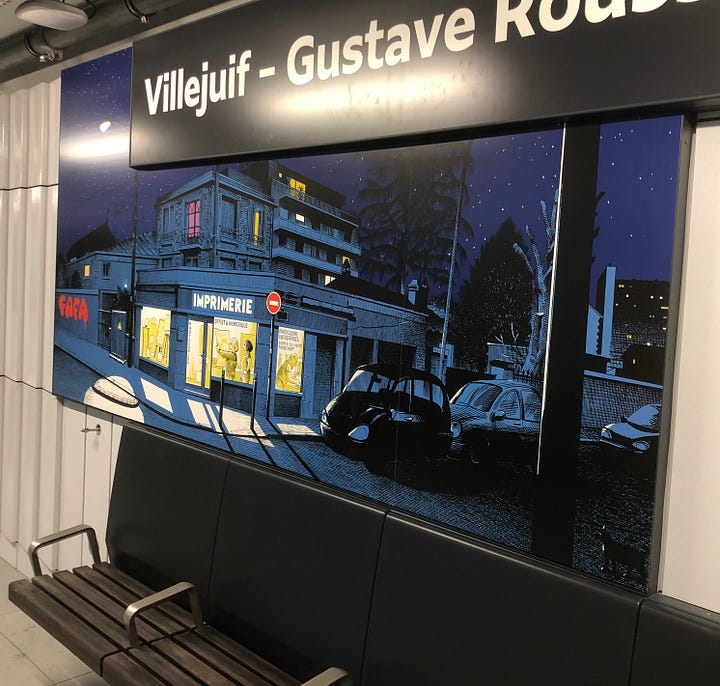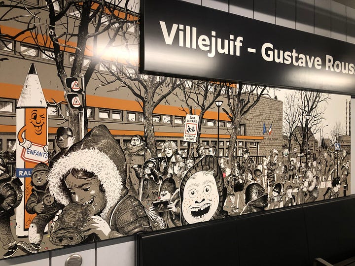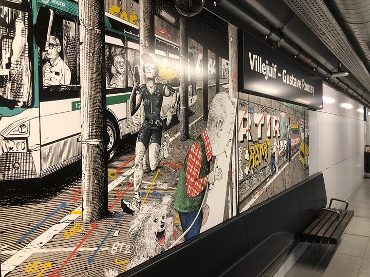 Pour clore le chapitre janvier 2025, sachez que depuis deux semaines, la station VILLEJUIF-INSTITUT GUSTAVE ROUSSY est ouverte au public et que vous pouvez donc y voir les douze fresques que j’ai réalisées pour les quais de la ligne 14 (celles de la ligne 15, réalisées par Magalie Bardos, ne seront visibles qu’en 2026, quand la ligne fonctionnera).